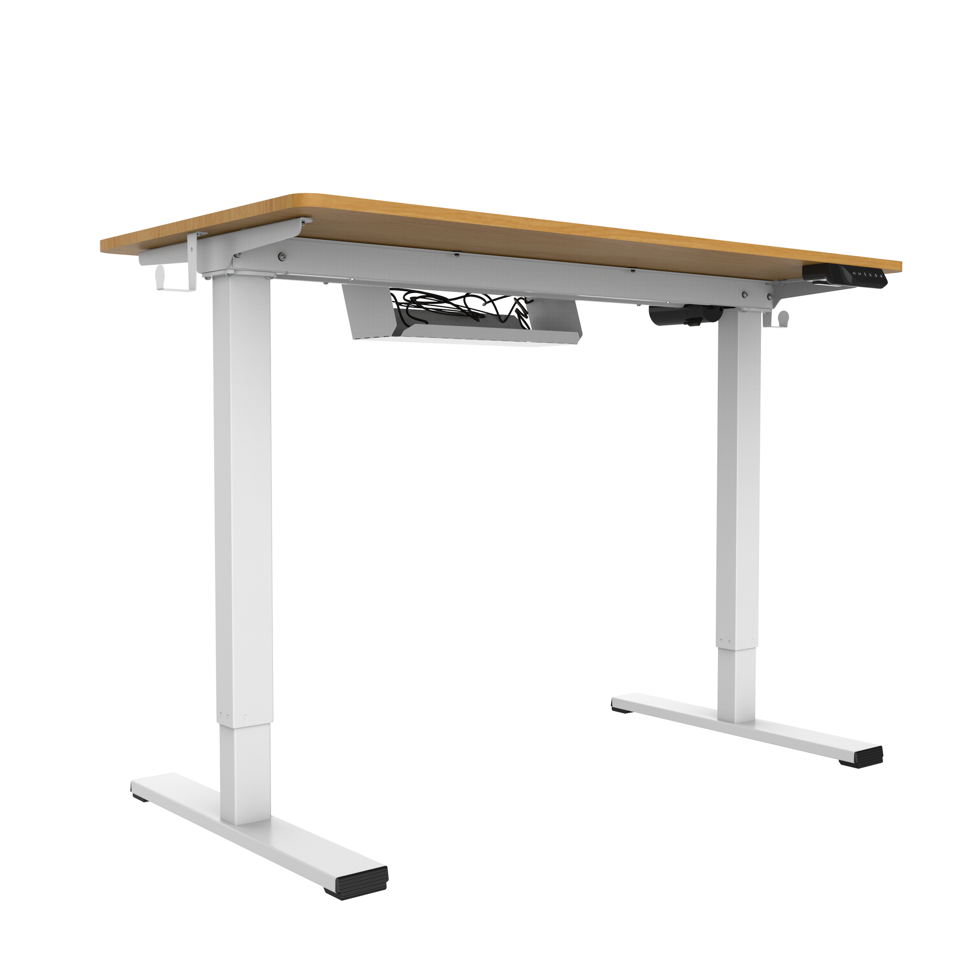 ➤ 48”x24” Oak-Color Desktop + White Leg Frames + Memory Preset Functions + 2 Headphone Hooks + Built-In Cord Management