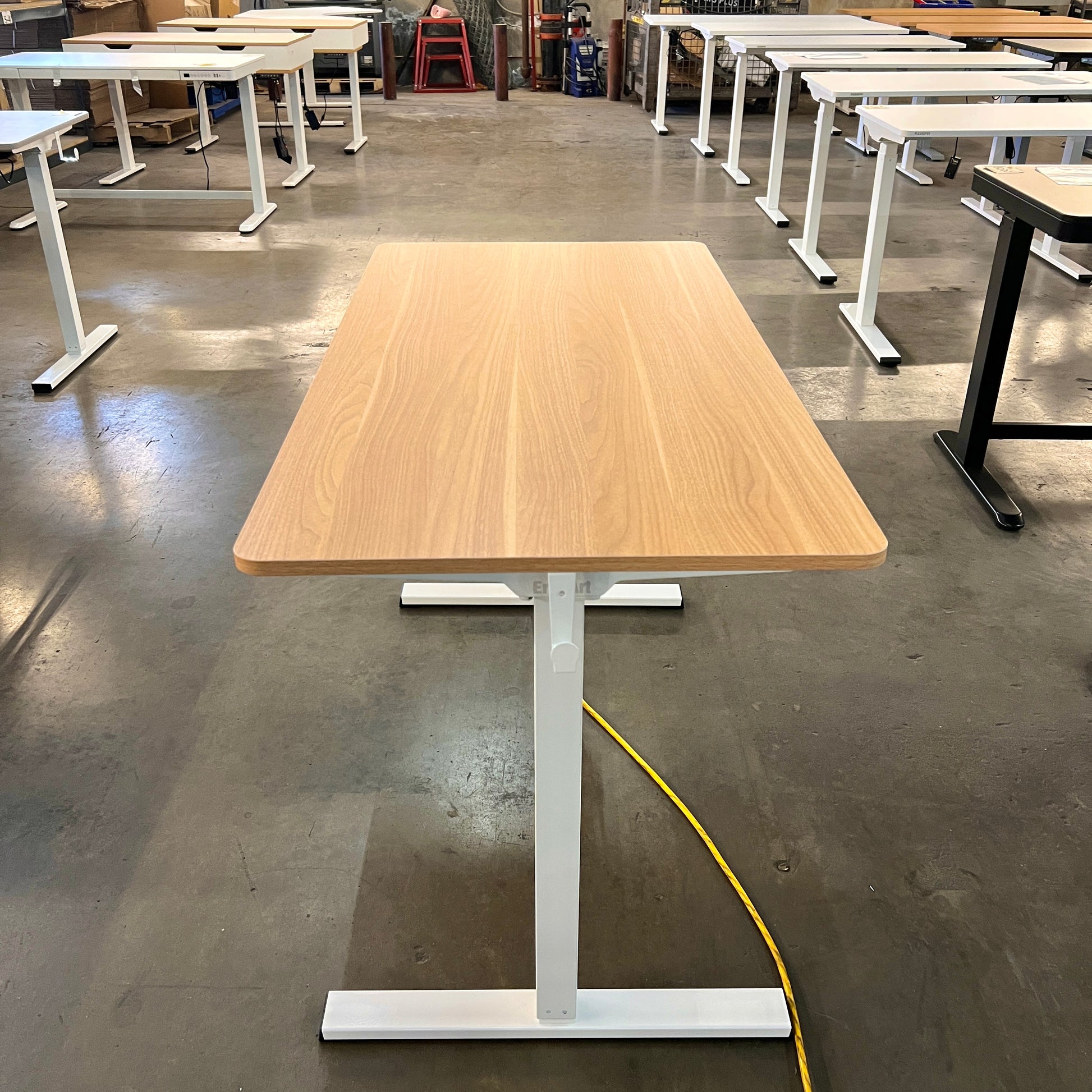 48"x24" Oak Color Electric Standing Desk + Headphone Hooks